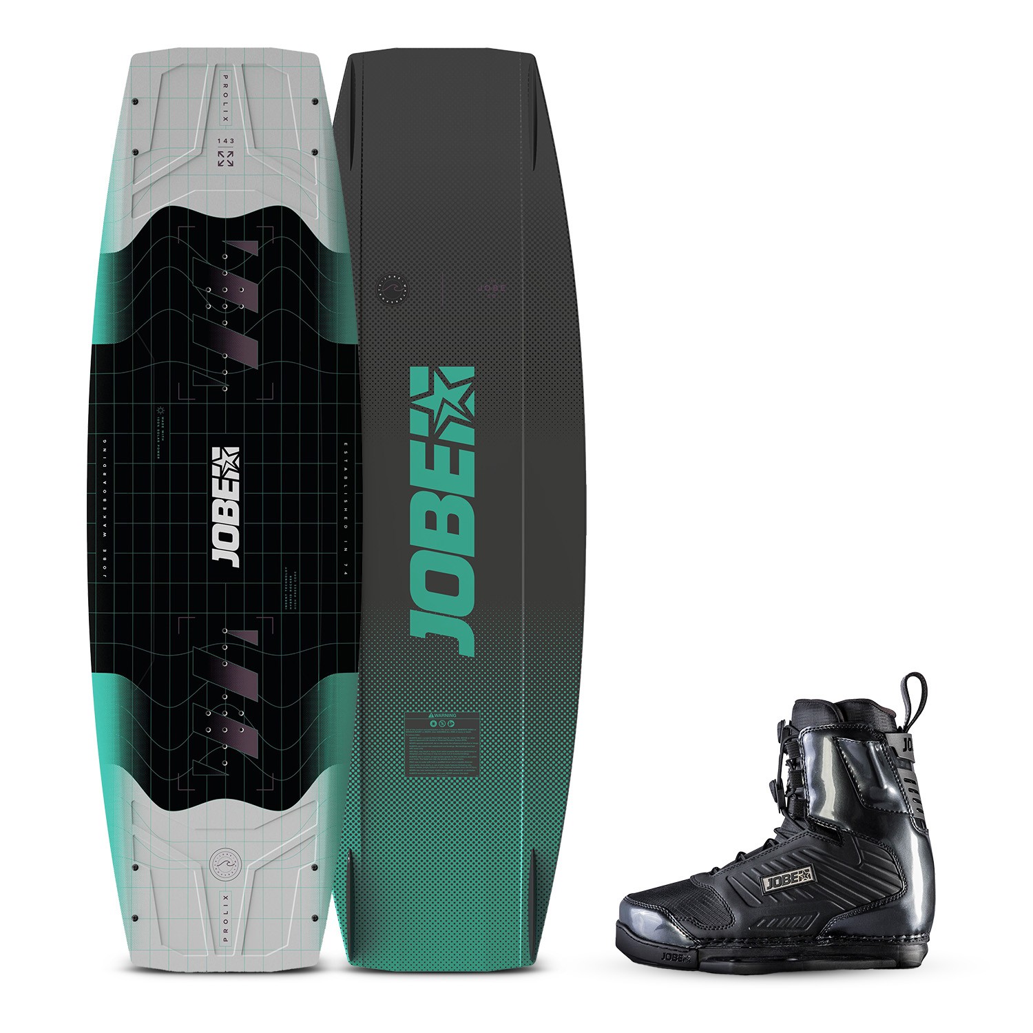 Experience dynamic performance with the Prolix Wakeboard, featuring a hybrid rocker for versatile riding. Its high-press core and tri-tech fiberglass construction offer durability and responsiveness. The board includes 4 removable nylon fins and smooth grooved channels for dependable grip. Designed with a rolled edge for added playfulness and crafted with 100% solar power, the Prolix combines innovation with sustainability. Bindings: Experience superior comfort and support with Charge Wakeboard Bindings. The ergonomic footbed, soft heel pads, and 3D molded tongue ensure a perfect fit, while the molded foam liner offers extra support. J-bars keep your ankle secure, and the dual lace system with easy-slide laceloops and Jobe lace lock system allow for quick adjustments. Stiffy plates provide added stability for a confident ride.
