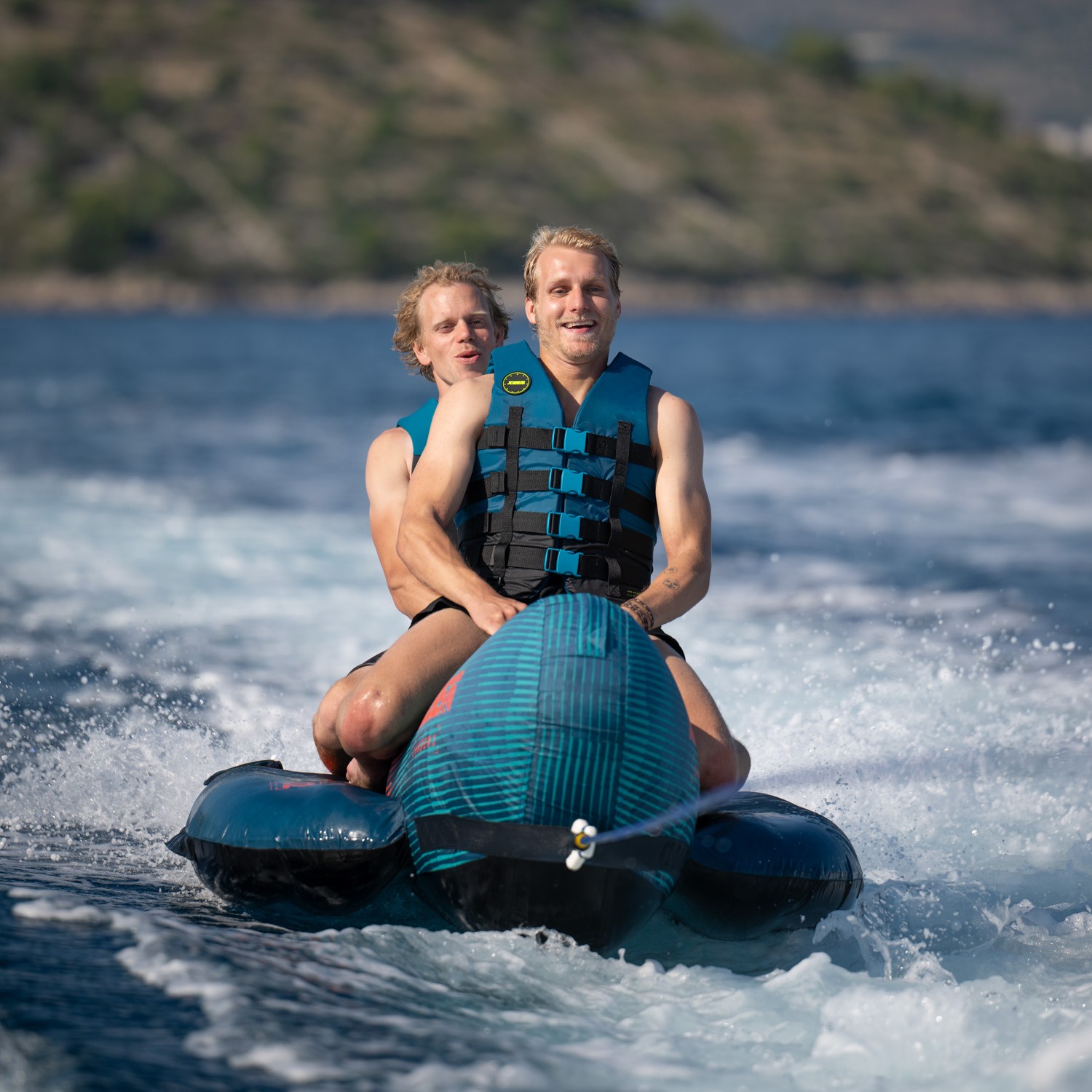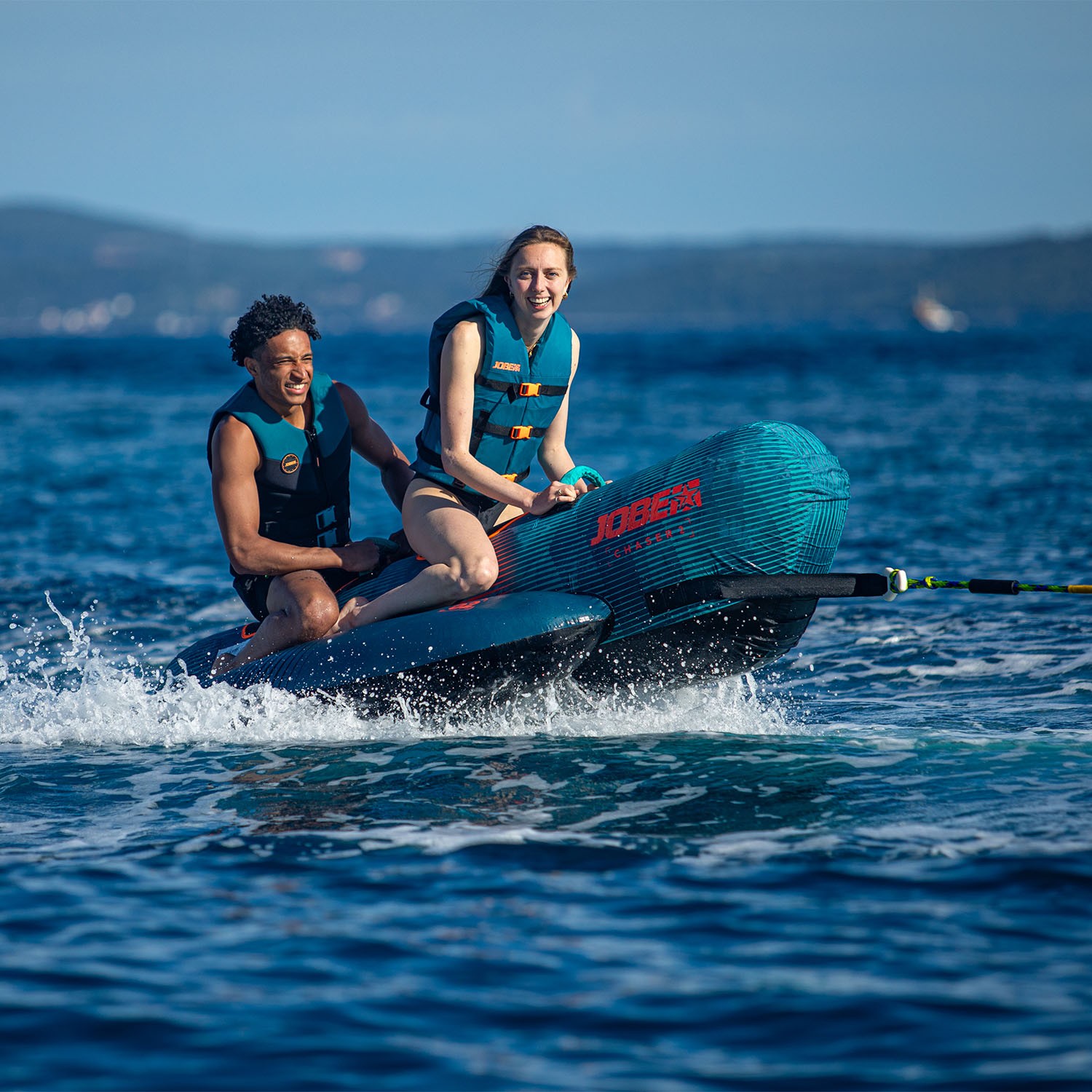 The Chaser 2 person towable is a serious towable to ride with a friend or family member. Its tough 840 nylon double-stitched cover protects the 28 gauge PVC-base and the tube from damaging. Hold on tight to its comfy and super strong nylon-wrapped handles with luxurious neoprene knuckle protection. Features a one way valve and quick connector for convenience. This banana for behind your boat has the most classical shape of all. Ready to go bananas?